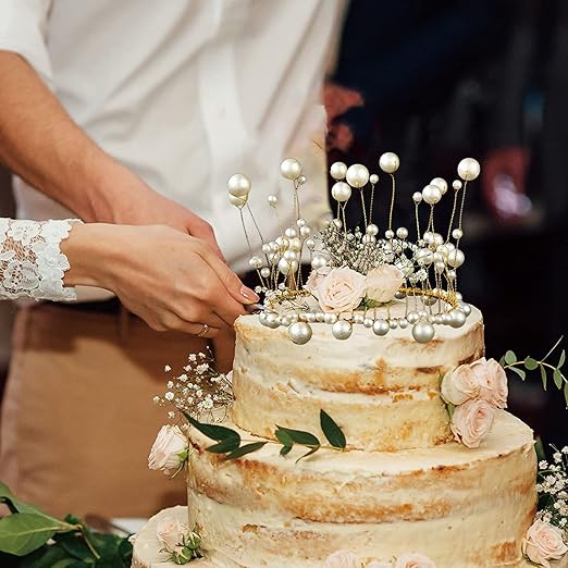 Crown Cake Topper for Girl's Birthday Decoration Kit - 1Pc Girl Crown for Birthday Queen Decoration, Pearl Topper, Cake Decoration Items